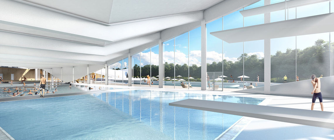 Il sera doté d'un bassin olympique intérieur, d’un bassin de plongeon et de plongée, un bassin de loisirs et une lagune de jeux. Un espace bien-être « balnéo » avec un hammam et un sauna sera également aménagé. Une salle de fitness et de cardio-training complétera cet univers dédié au bien-être.